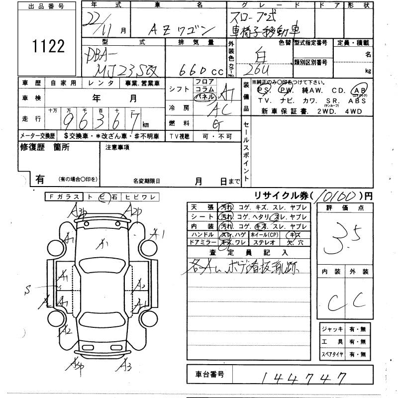 MAZDA AZ WAGON SLOPE TYPE CAR CHAIR MOVEMENT CAR - лот 1122