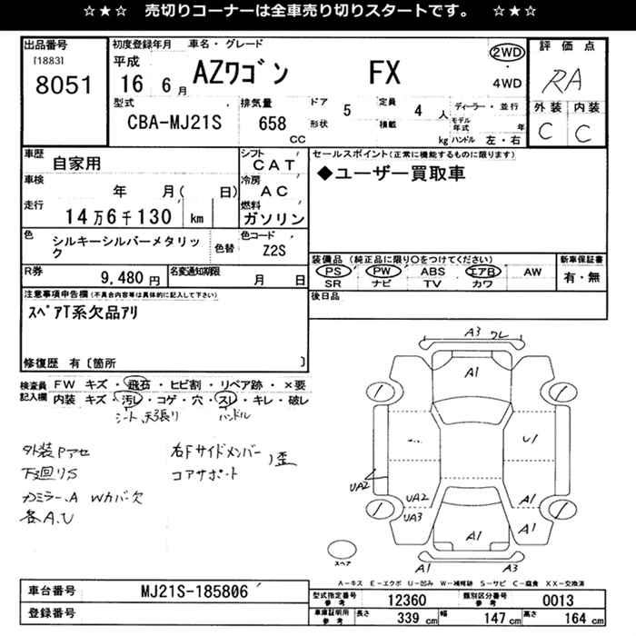 MAZDA AZ WAGON FX - лот 8051
