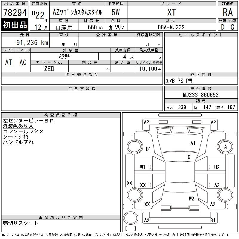 MAZDA AZ WAGON CUSTOM STYLE - лот 78294