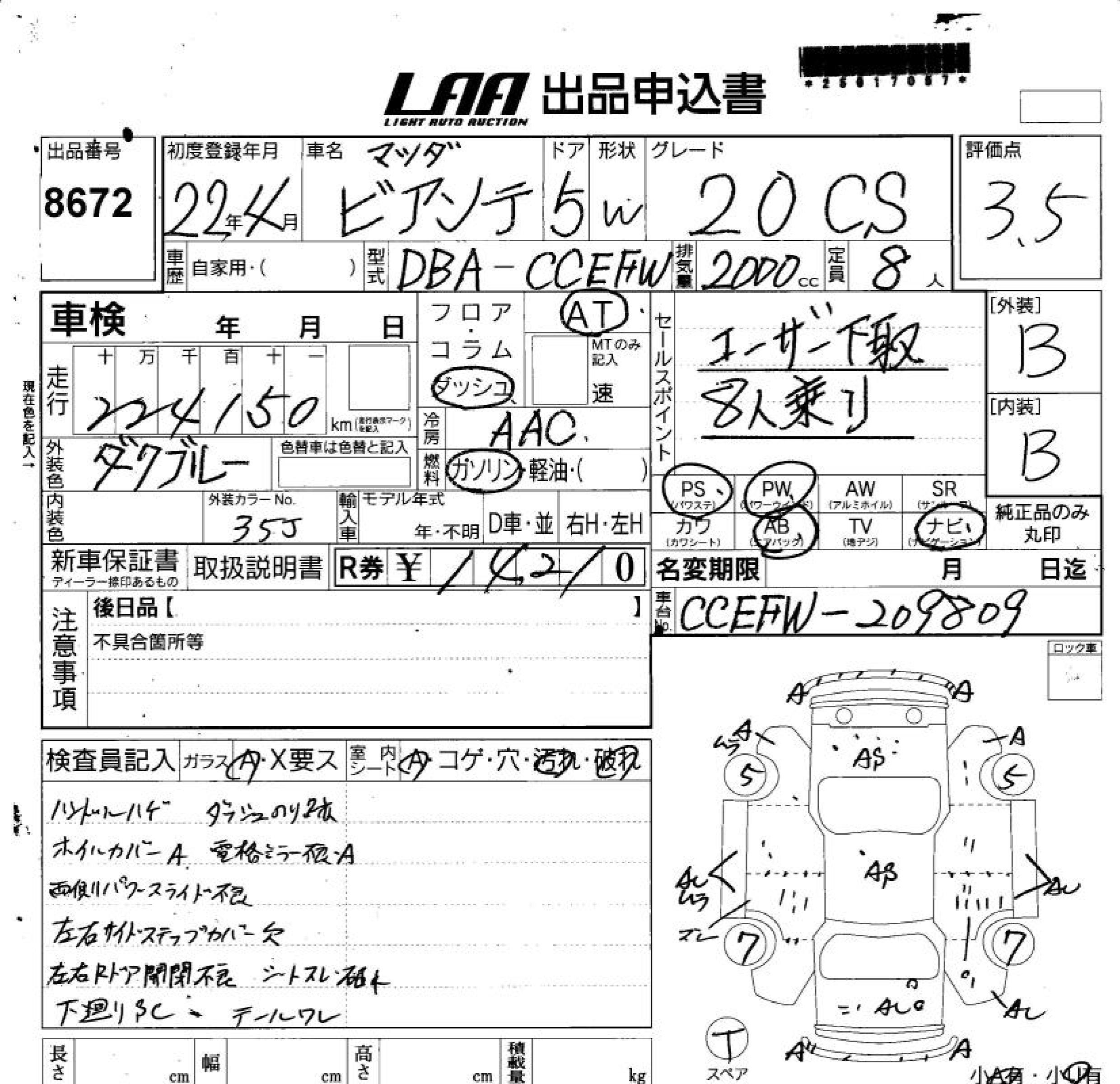 MAZDA BIANTE 20CS - лот 8672
