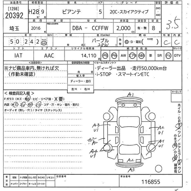 MAZDA BIANTE 20C- SKYACTIVE - лот 20392