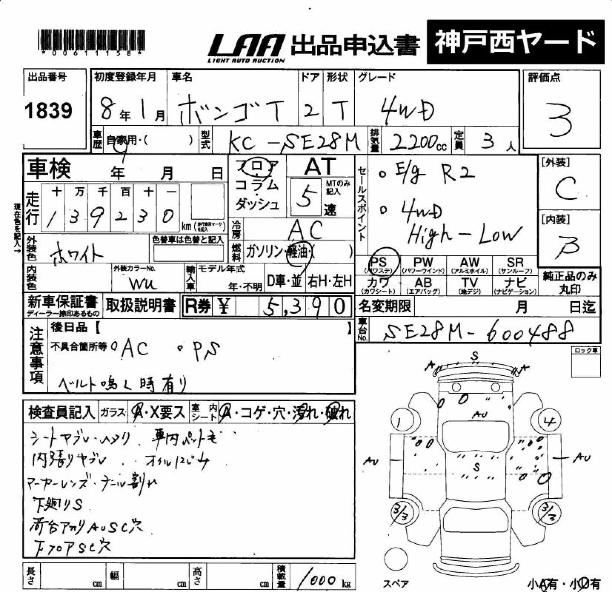 MAZDA BONGO TRUCK - лот 1839