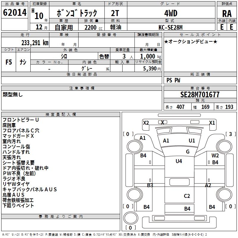 MAZDA BONGO TRUCK - лот 62014