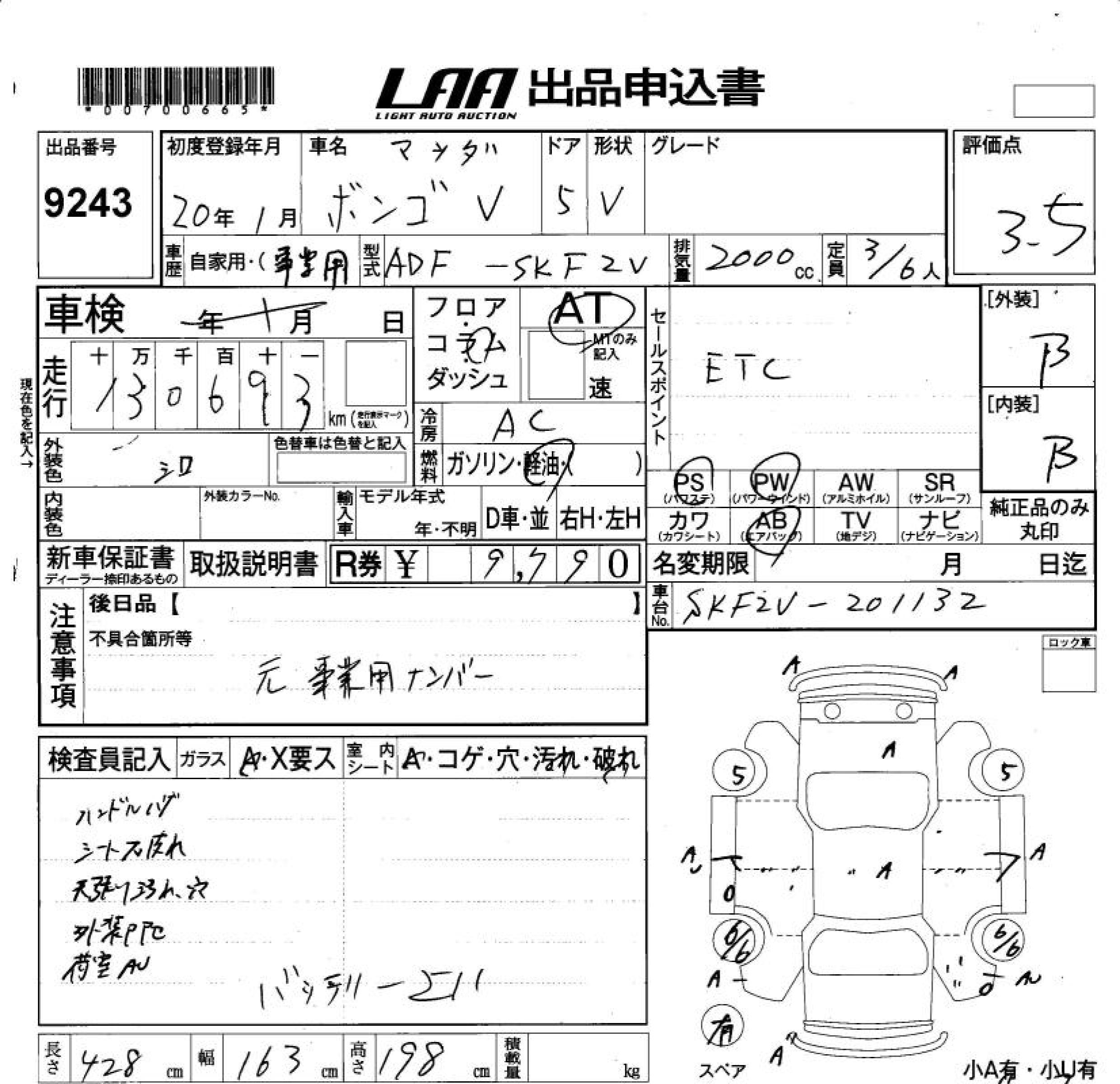 MAZDA BONGO VAN - лот 9243