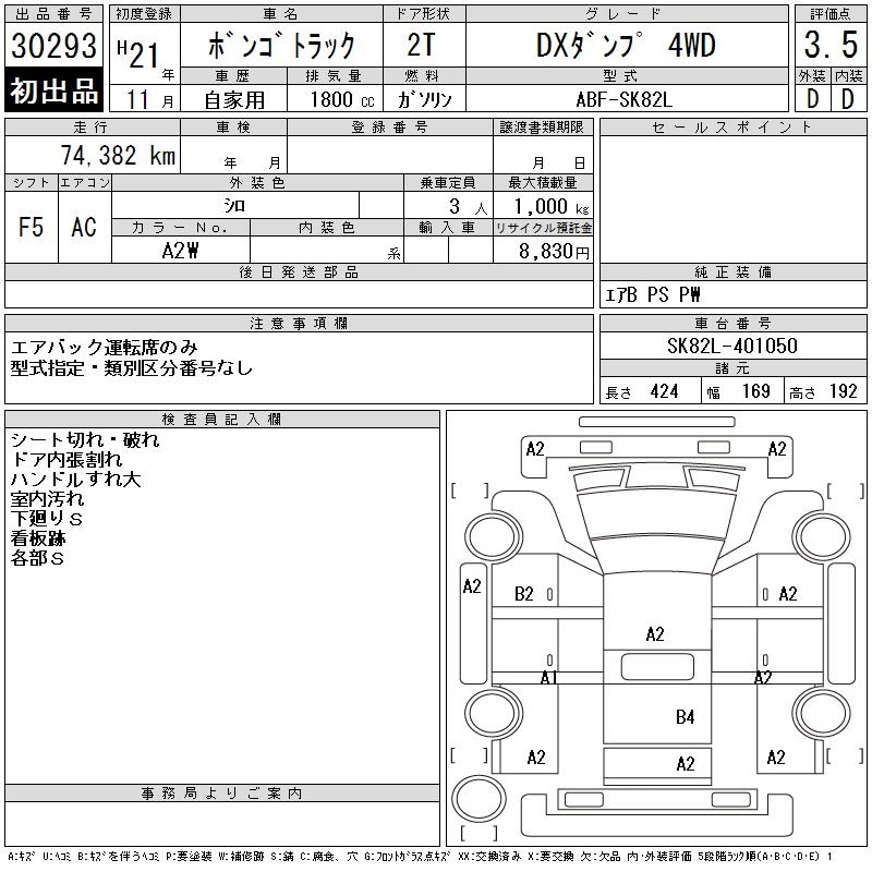 MAZDA BONGO TRUCK DX DUMP 4WD - лот 30293