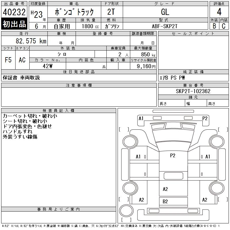 MAZDA BONGO TRUCK GL - лот 40232