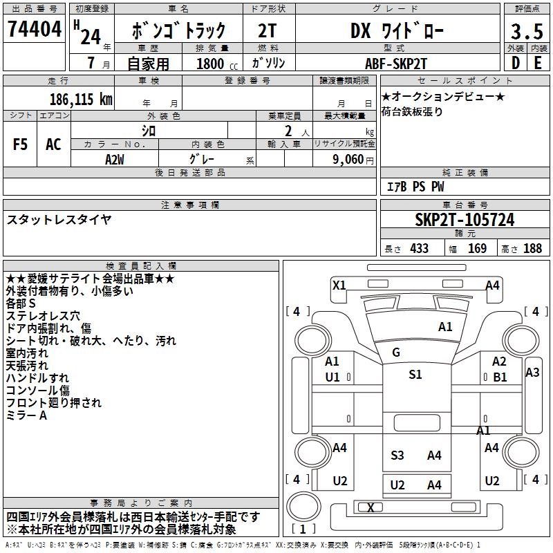 MAZDA BONGO TRUCK DX WIDE LOW - лот 74404