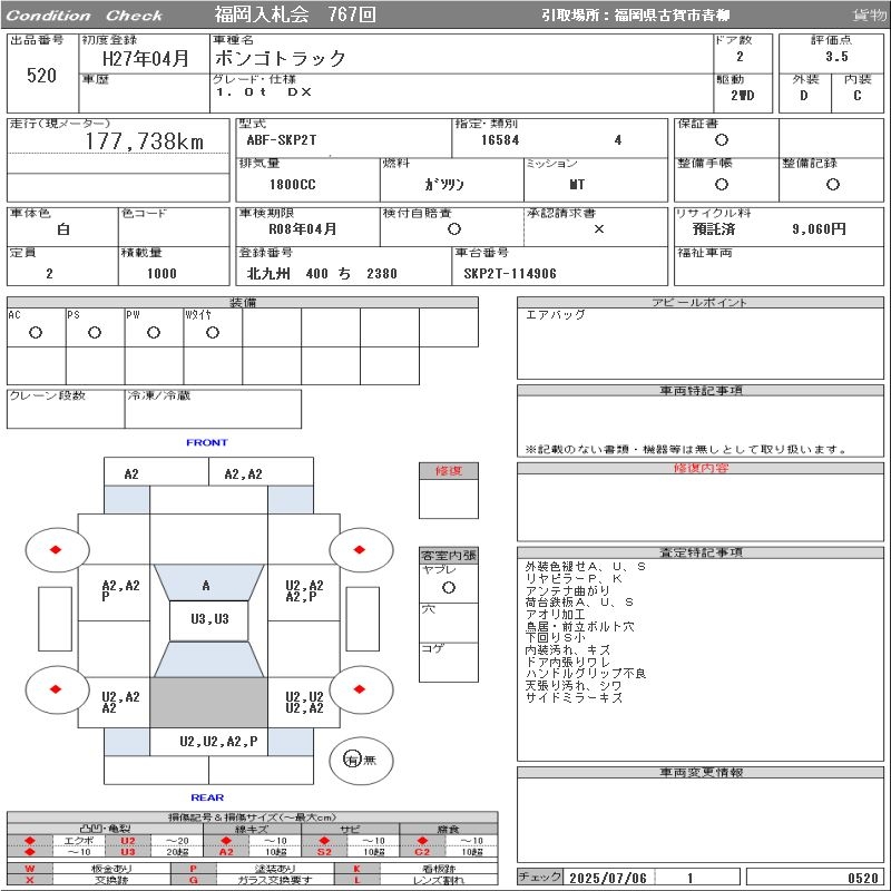MAZDA BONGO TRUCK 1.0t DX - лот 520