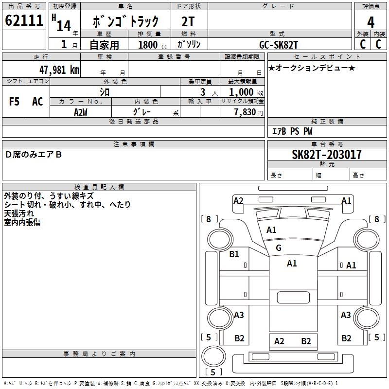 MAZDA BONGO TRUCK - лот 62111
