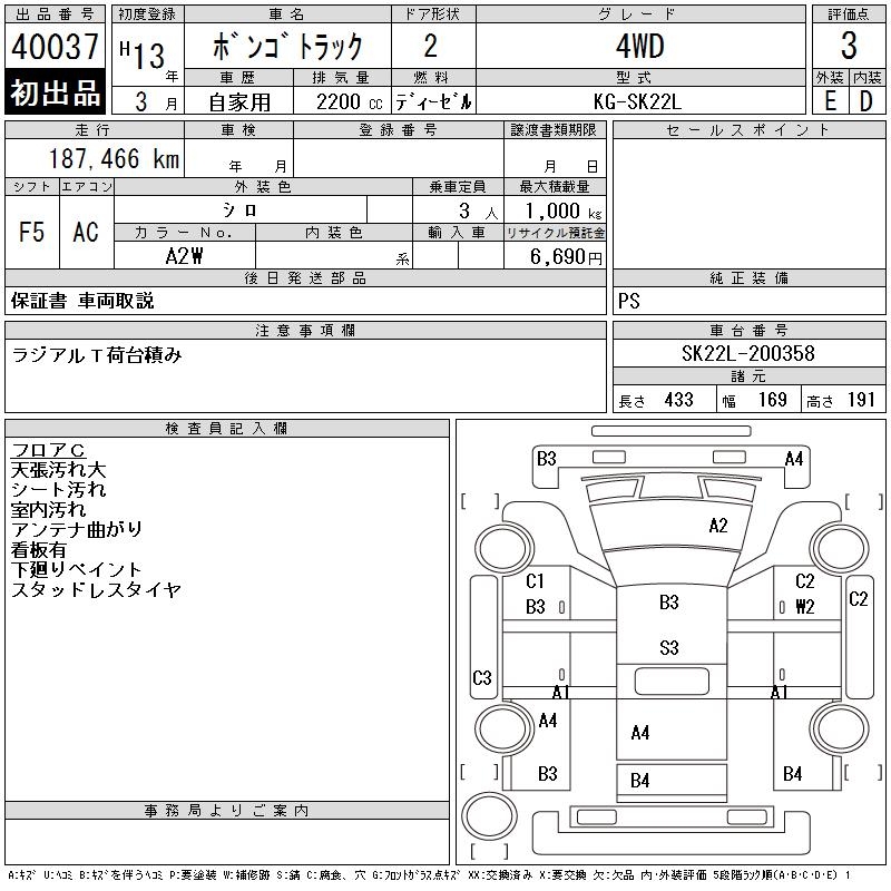 MAZDA BONGO TRUCK 4WD - лот 40037