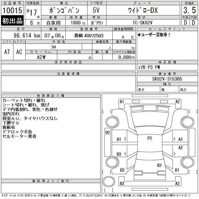 MAZDA BONGO VAN WIDE LOW DX - лот 10015