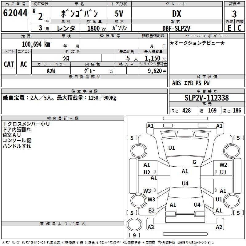 MAZDA BONGO VAN DX - лот 62044