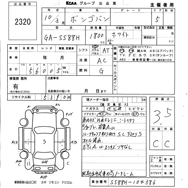 MAZDA BONGO VAN - лот 2320