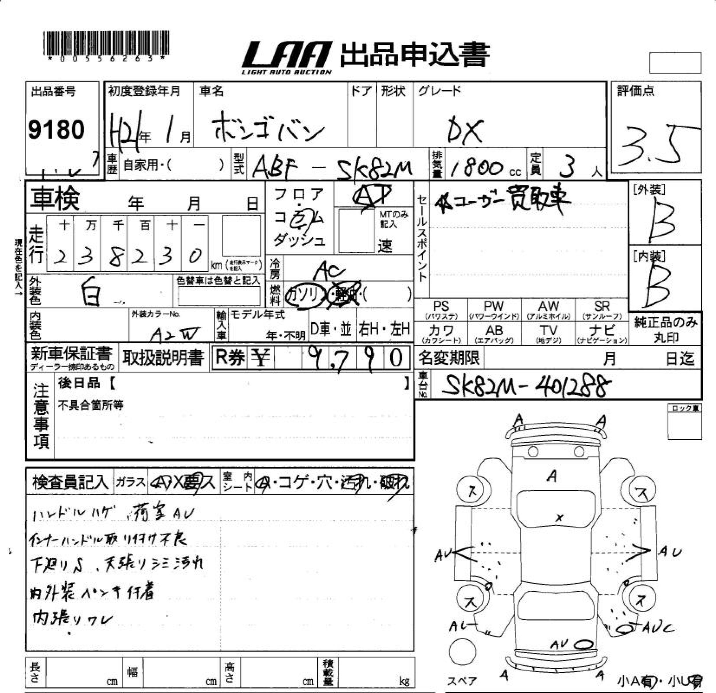 MAZDA BONGO VAN DX - лот 9180