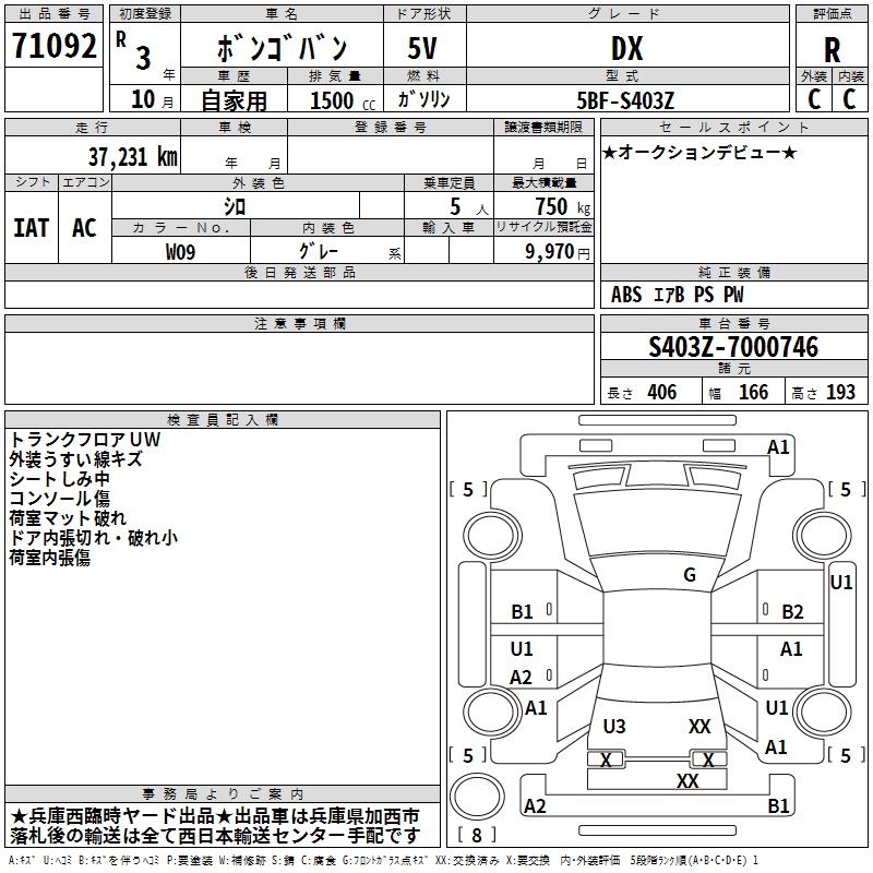 MAZDA BONGO VAN DX - лот 71092