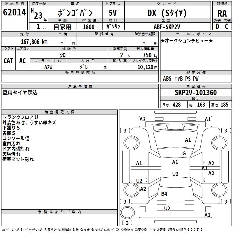 MAZDA BONGO VAN DX (S TIRE ) - лот 62014