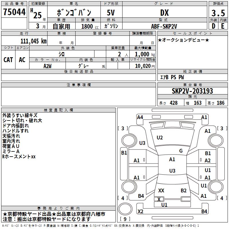MAZDA BONGO VAN DX - лот 75044