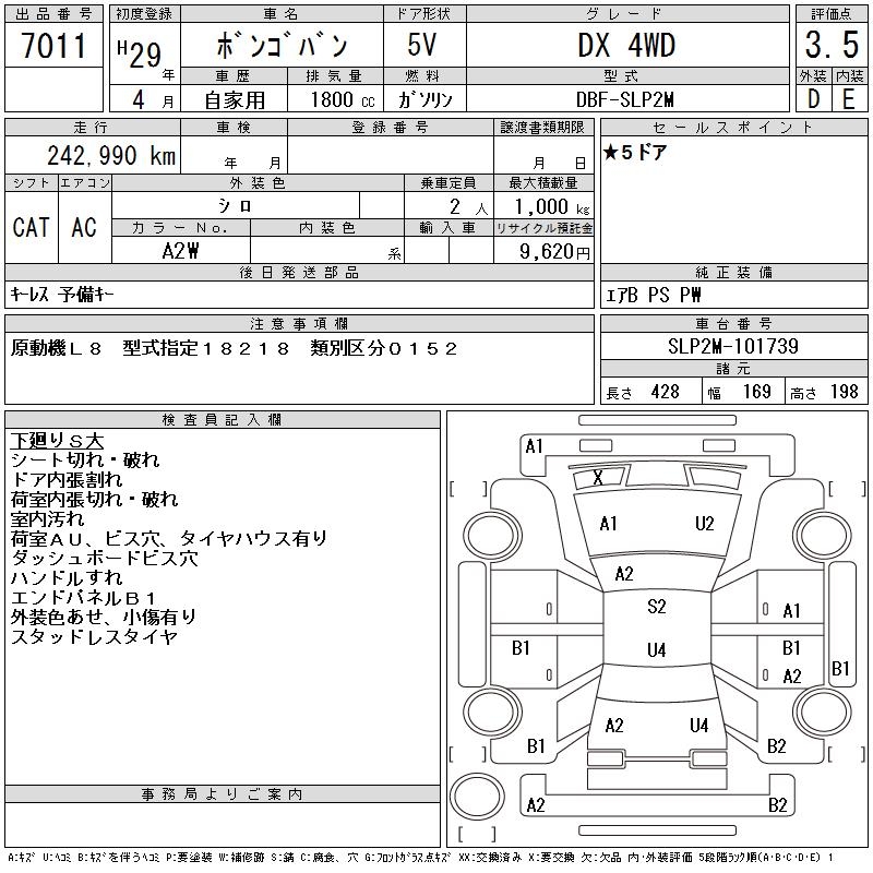 MAZDA BONGO VAN DX 4WD - лот 7011