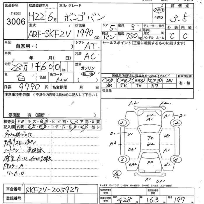 MAZDA BONGO VAN - лот 3006