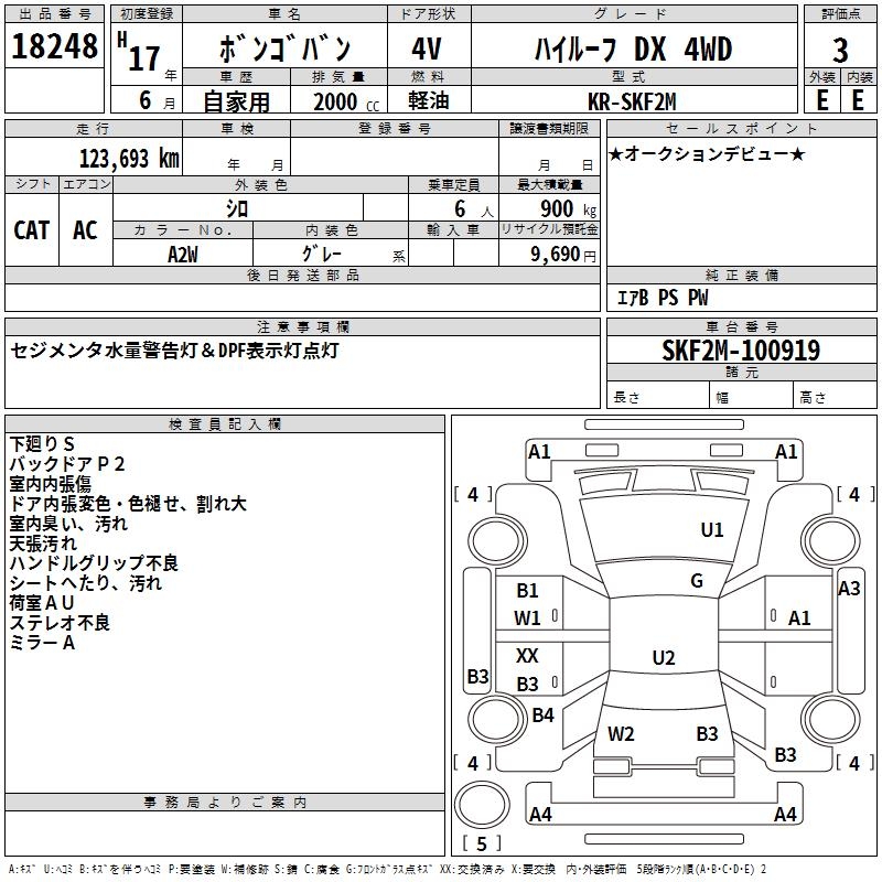 MAZDA BONGO VAN HIGH ROOF DX 4WD - лот 18248