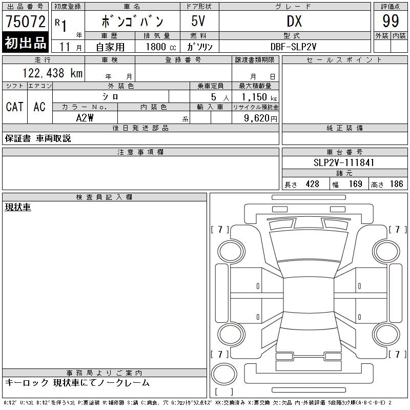 MAZDA BONGO VAN DX - лот 75072