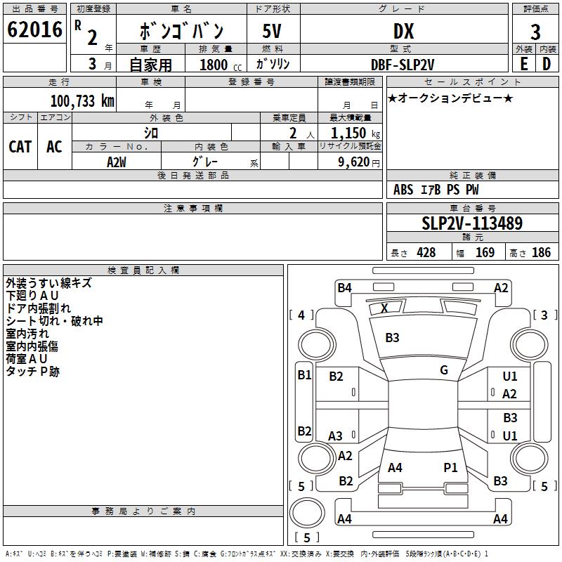 MAZDA BONGO VAN DX - лот 62016