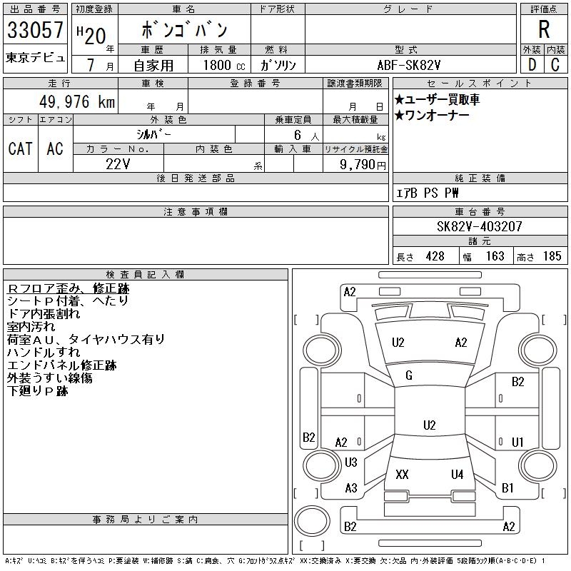 MAZDA BONGO VAN - лот 33057