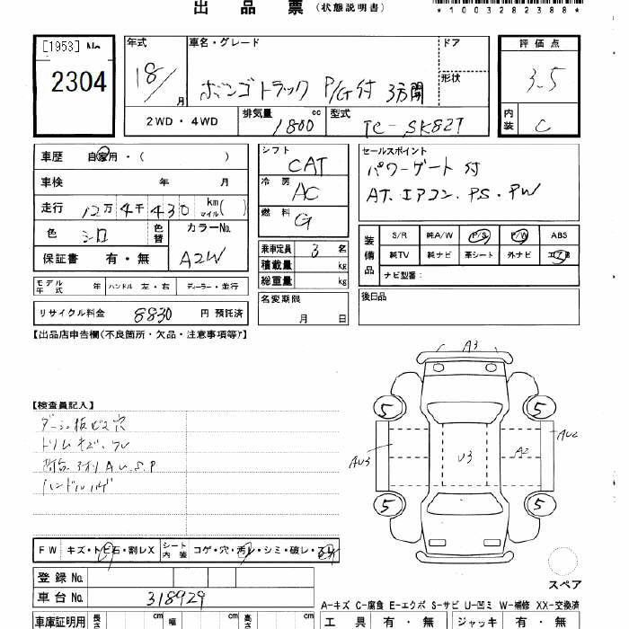 MAZDA BONGO P/G есть 3-way open - лот 2304