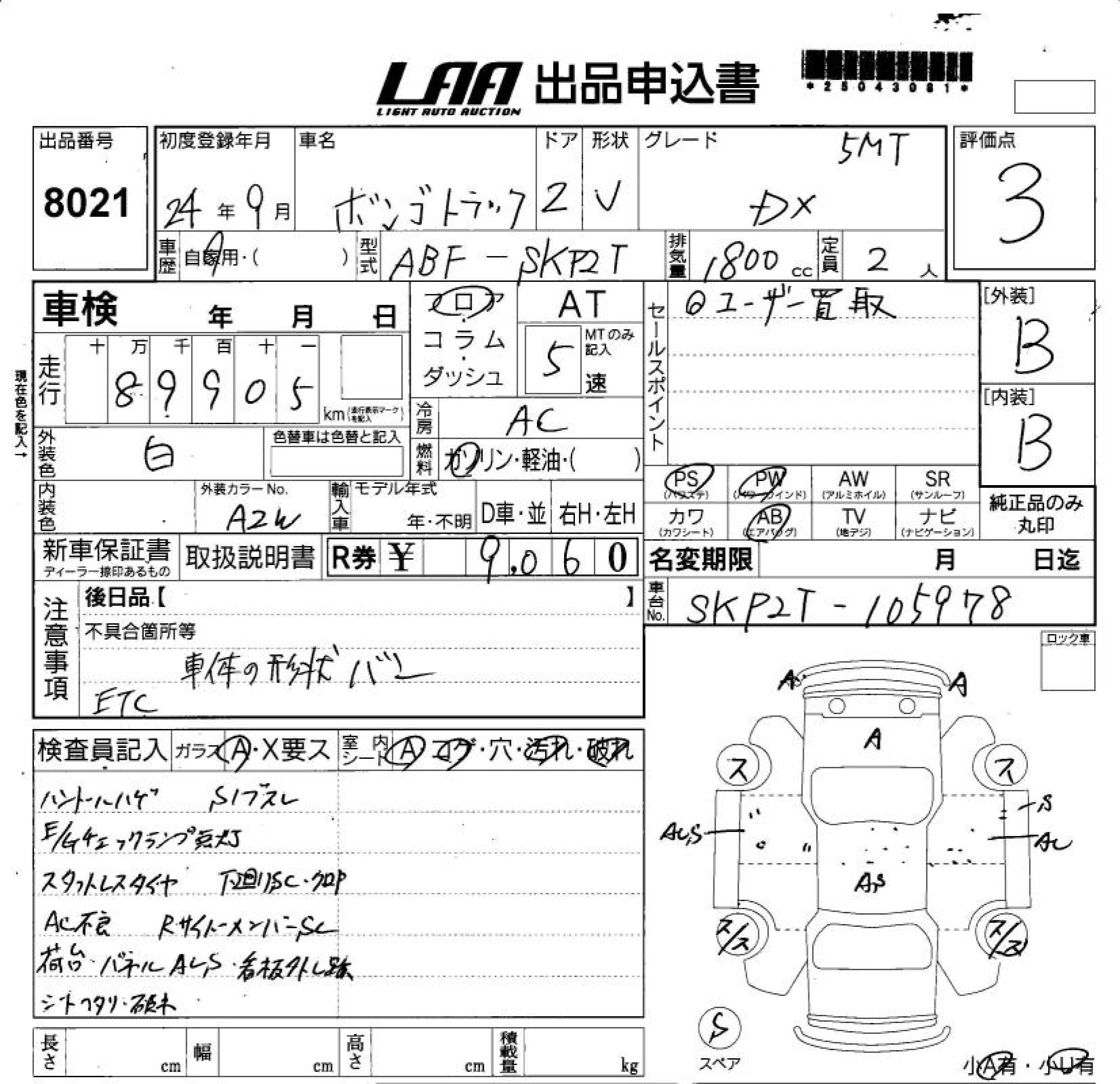 MAZDA BONGO TRUCK - лот 8021