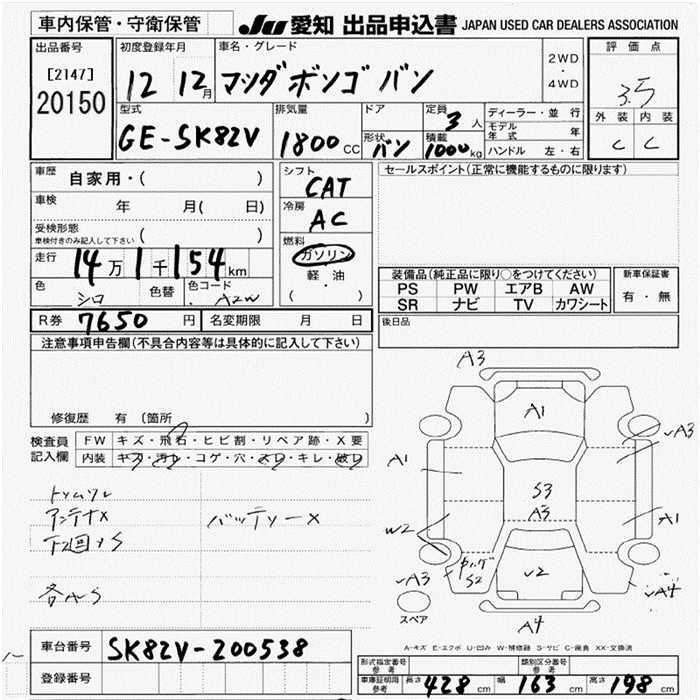 MAZDA BONGO VAN - лот 20150