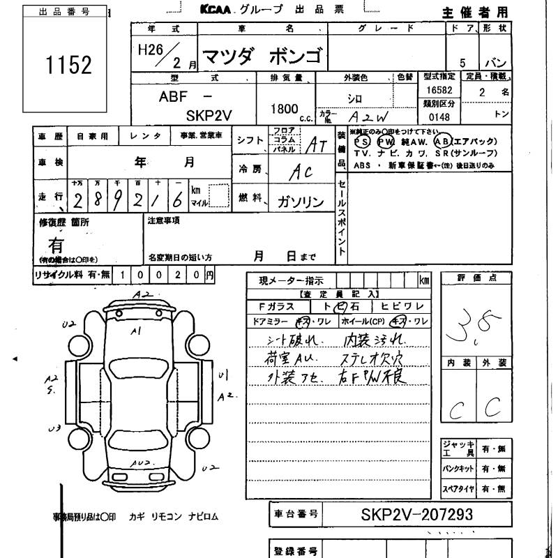 MAZDA BONGO VAN - лот 1152