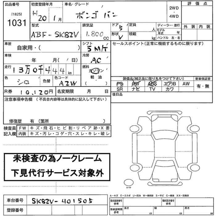 MAZDA BONGO VAN - лот 1031