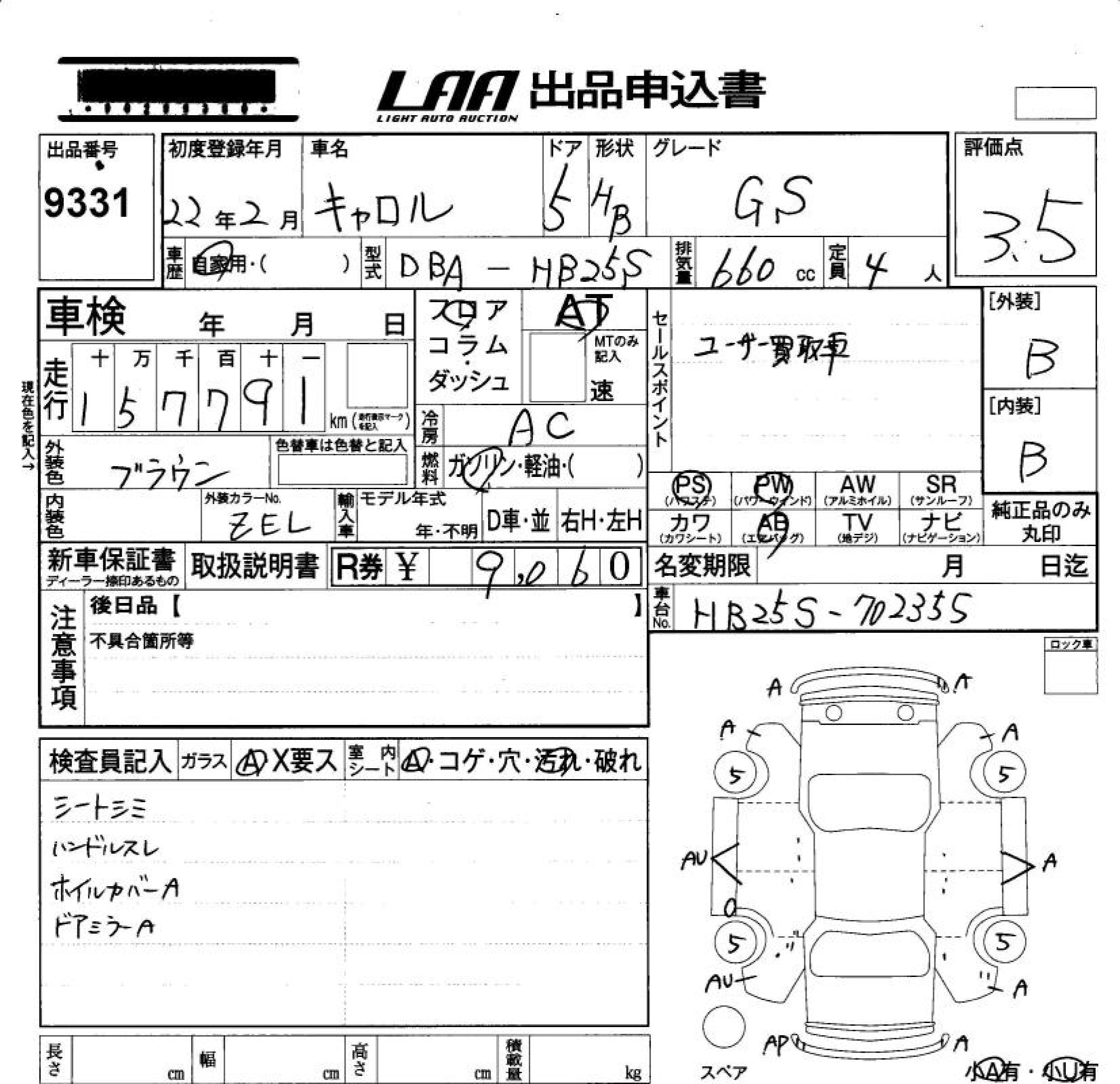 MAZDA CAROL GS - лот 9331