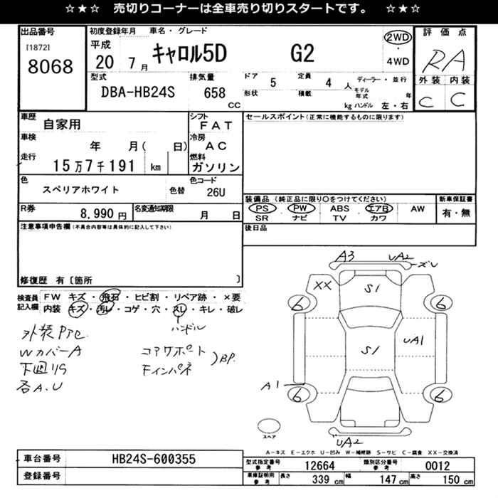 MAZDA CAROL G2 - лот 8068