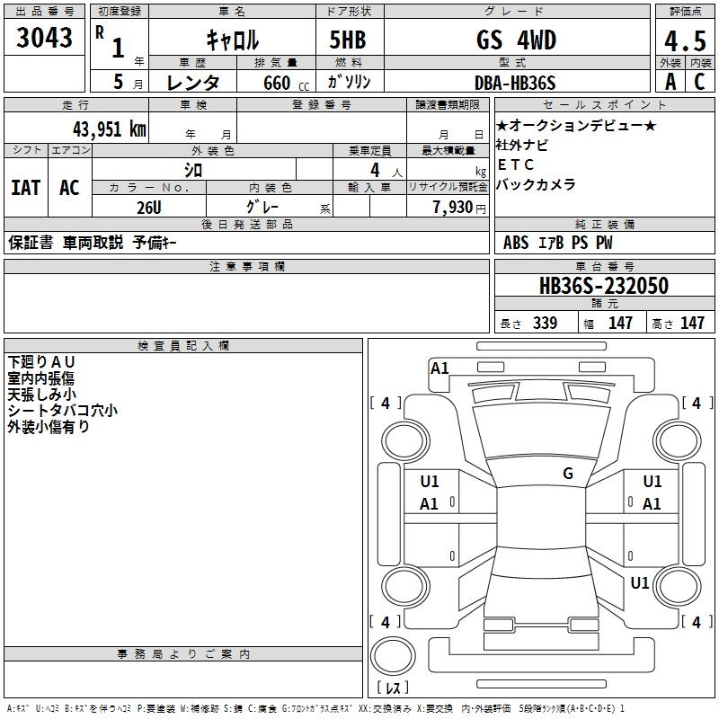 MAZDA CAROL GS 4WD - лот 3043