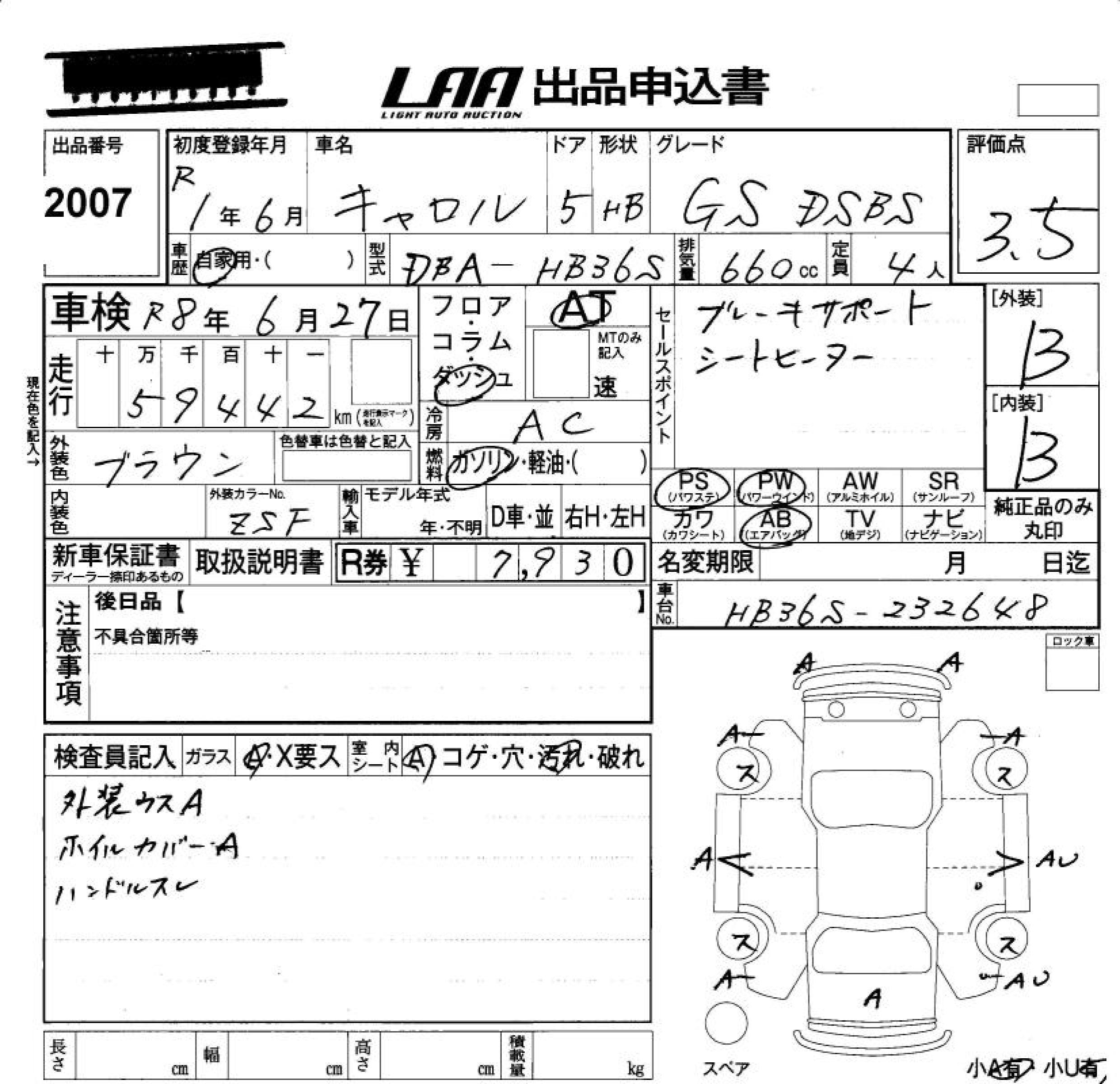 MAZDA CAROL GS DSBS - лот 2007