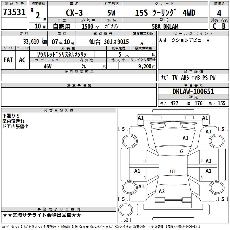 MAZDA CX-3 15S TOURING 4WD - лот 73531