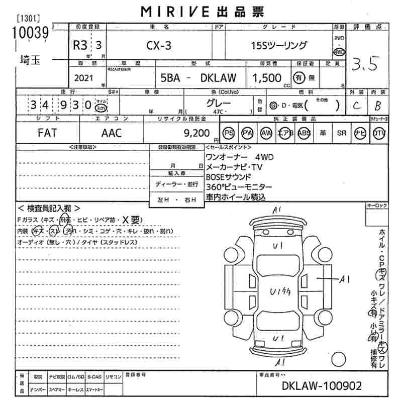 MAZDA CX-3 15S TOURING - лот 10039