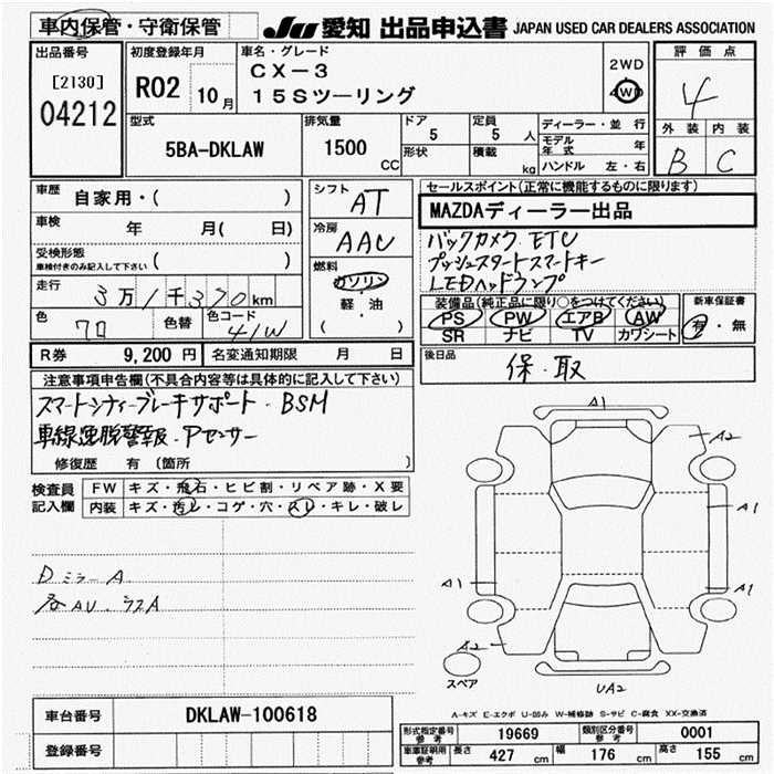 MAZDA CX-3 15S TOURING 4WD - лот 4212