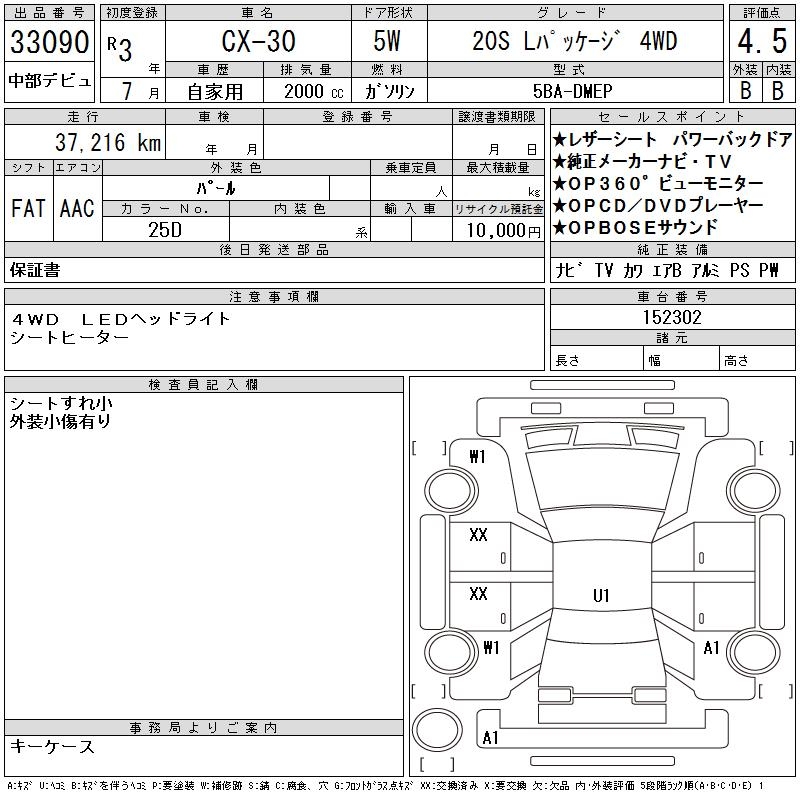 MAZDA CX-30 20S L PACKAGE 4WD - лот 33090