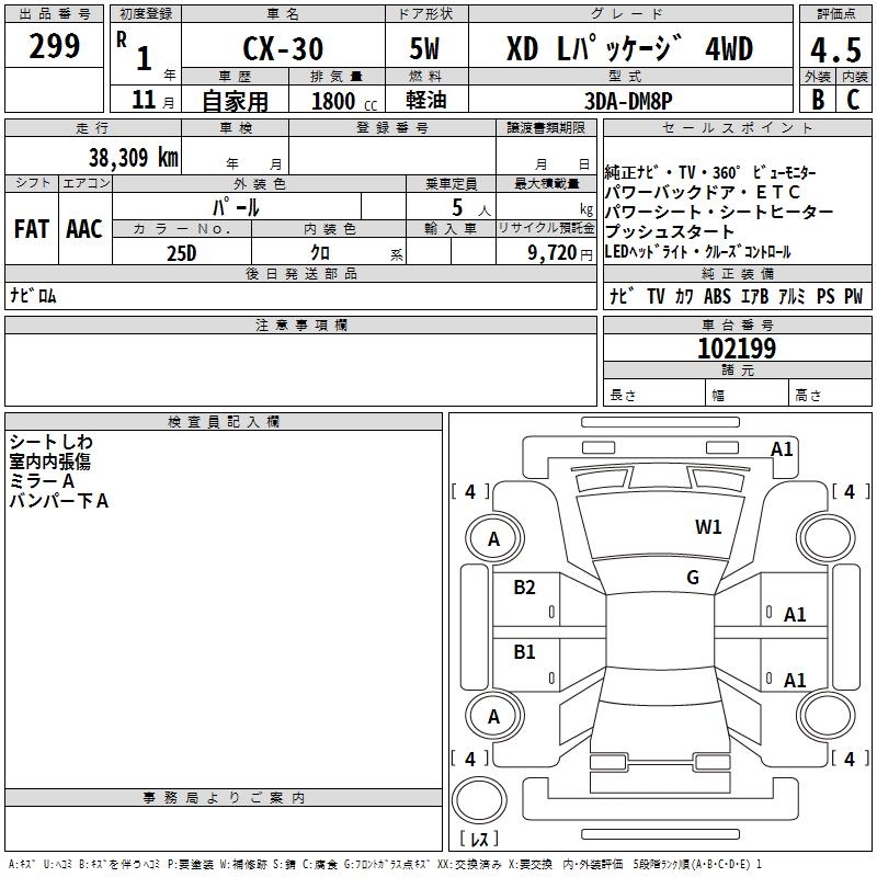 Оборудование: PS P 2 подушки безопасности ABS AW навигация TV кожа депозит уплачен 9,720 иен