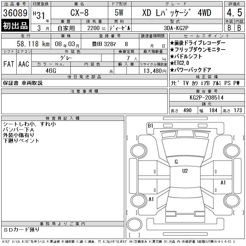 MAZDA CX-8 XD L PACKAGE 4WD - лот 36089