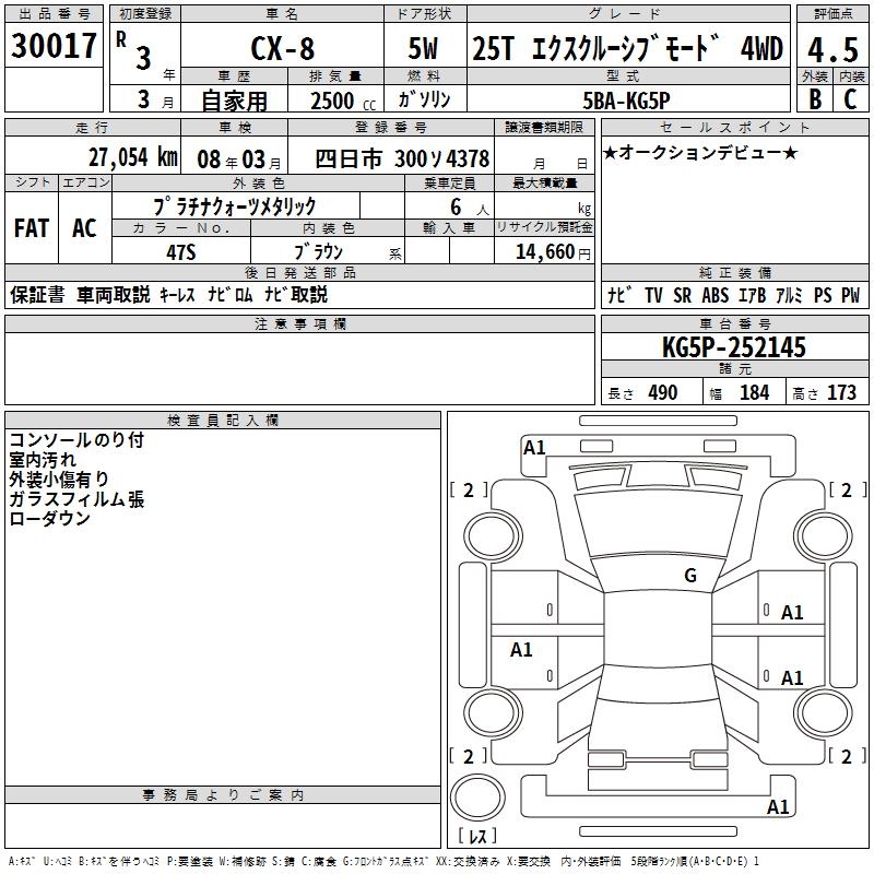 MAZDA CX-8 25T EXCLUSIVE MO-TO4WD - лот 30017