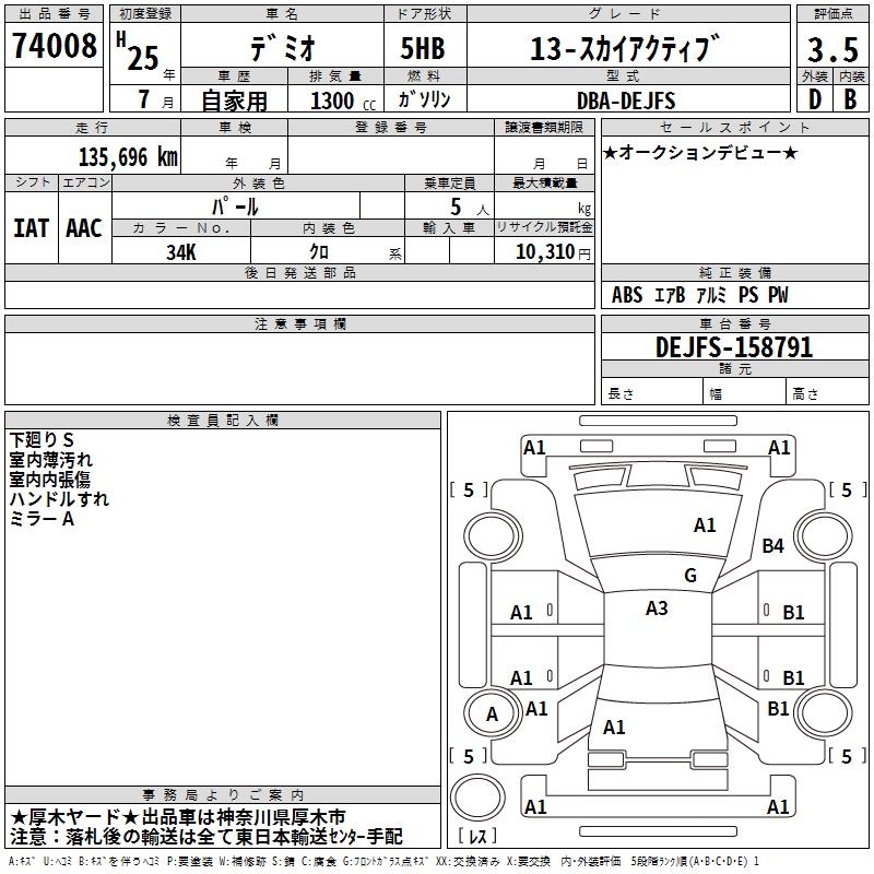 MAZDA DEMIO 13- SKYACTIVE - лот 74008