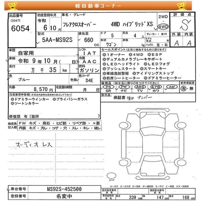 MAZDA FLAIR CROSSOVER 4WD HYBRID XS - лот 6054