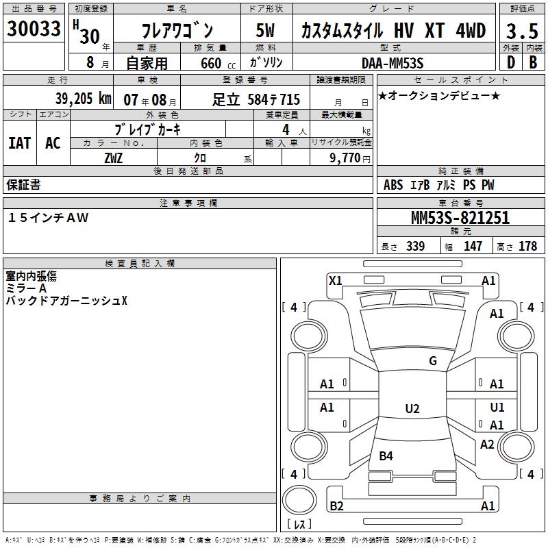 MAZDA FLAIR WAGON CUSTOM STYLE HV XT 4WD - лот 30033