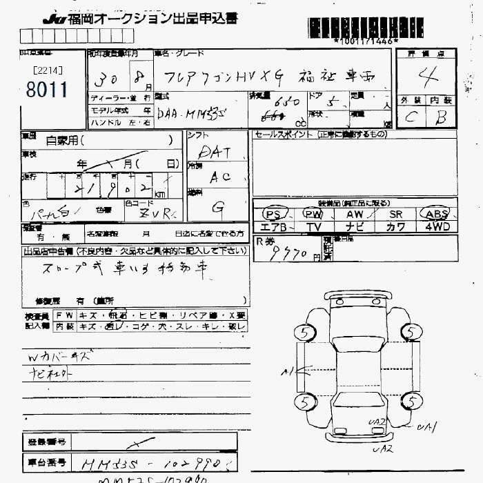 MAZDA FLAIR WAGON HYBRID XG WELLFARE CAR - лот 8011