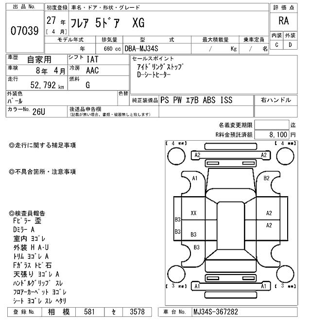 Оборудование: PS PW подушка безопасности ABS ISS расстояние 52,792km депозит уплачен 8,100 иен
