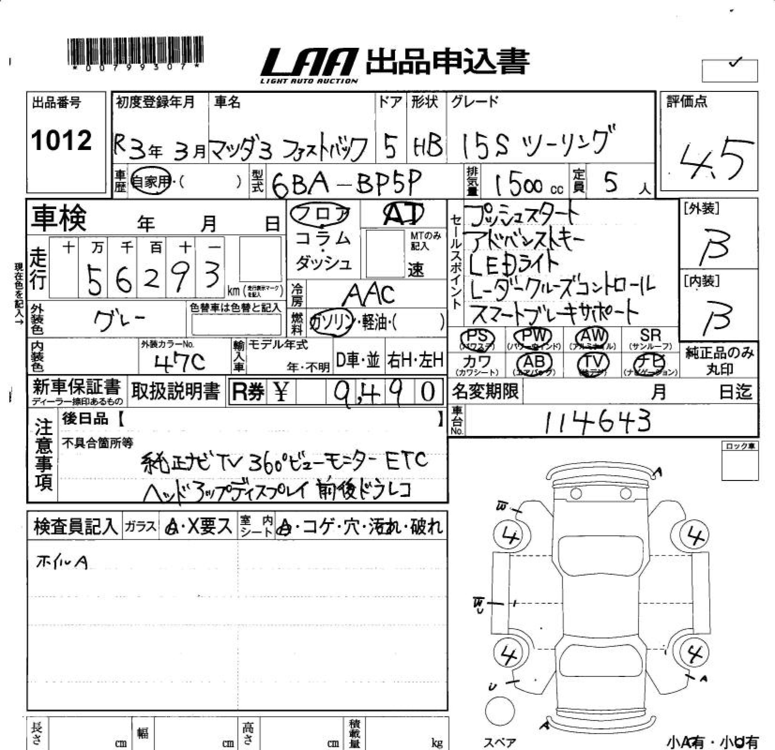 MAZDA MAZDA3 FASTBACK - лот 1012