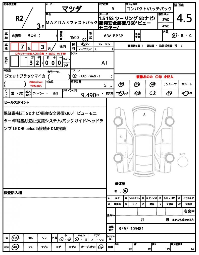 MAZDA MAZDA3 FASTBACK - лот 60695